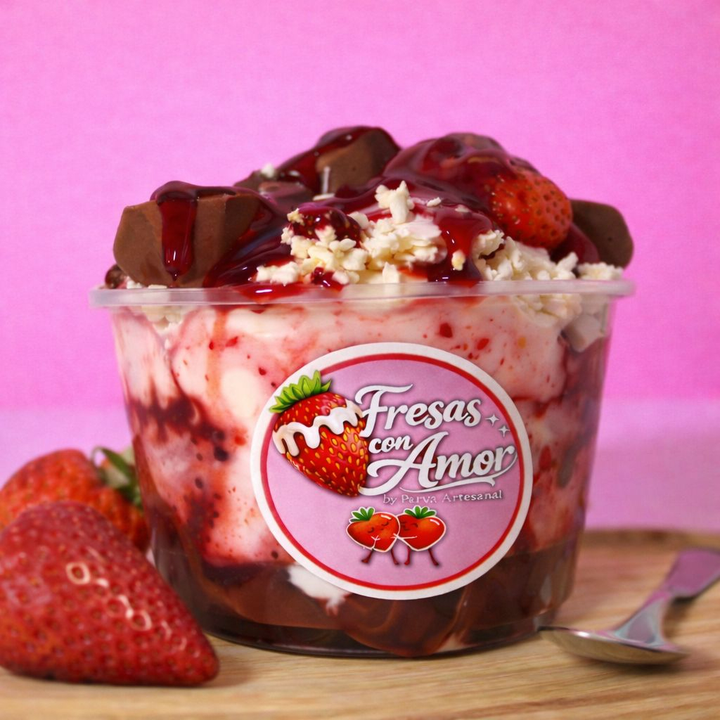 FRESAS CON CREMA,QUESO,SALSA A TU ELLECION,AREQUIPE,CHOCOLATE,LECHERITA,CARAMELO Y UN TOPPING