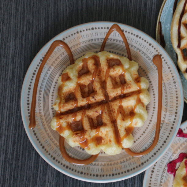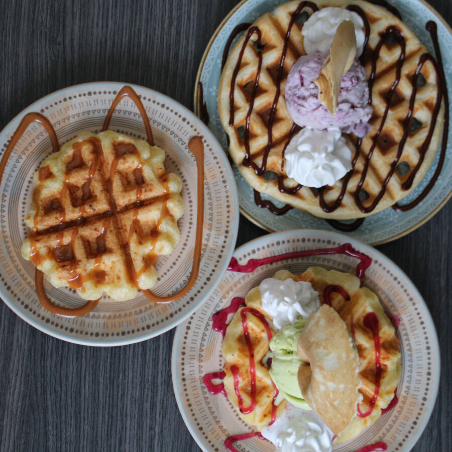 Waffle de mezcla tradicional acompañado con un sabor de gelato, chantillí y 1 salsa a elección.