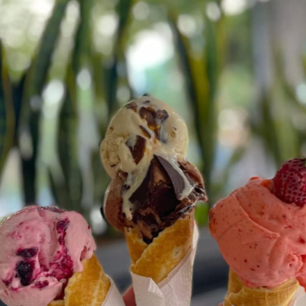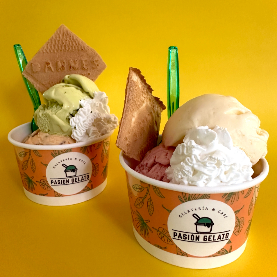 Tres sabores de gelato a eleccion, chantilli y galleta.