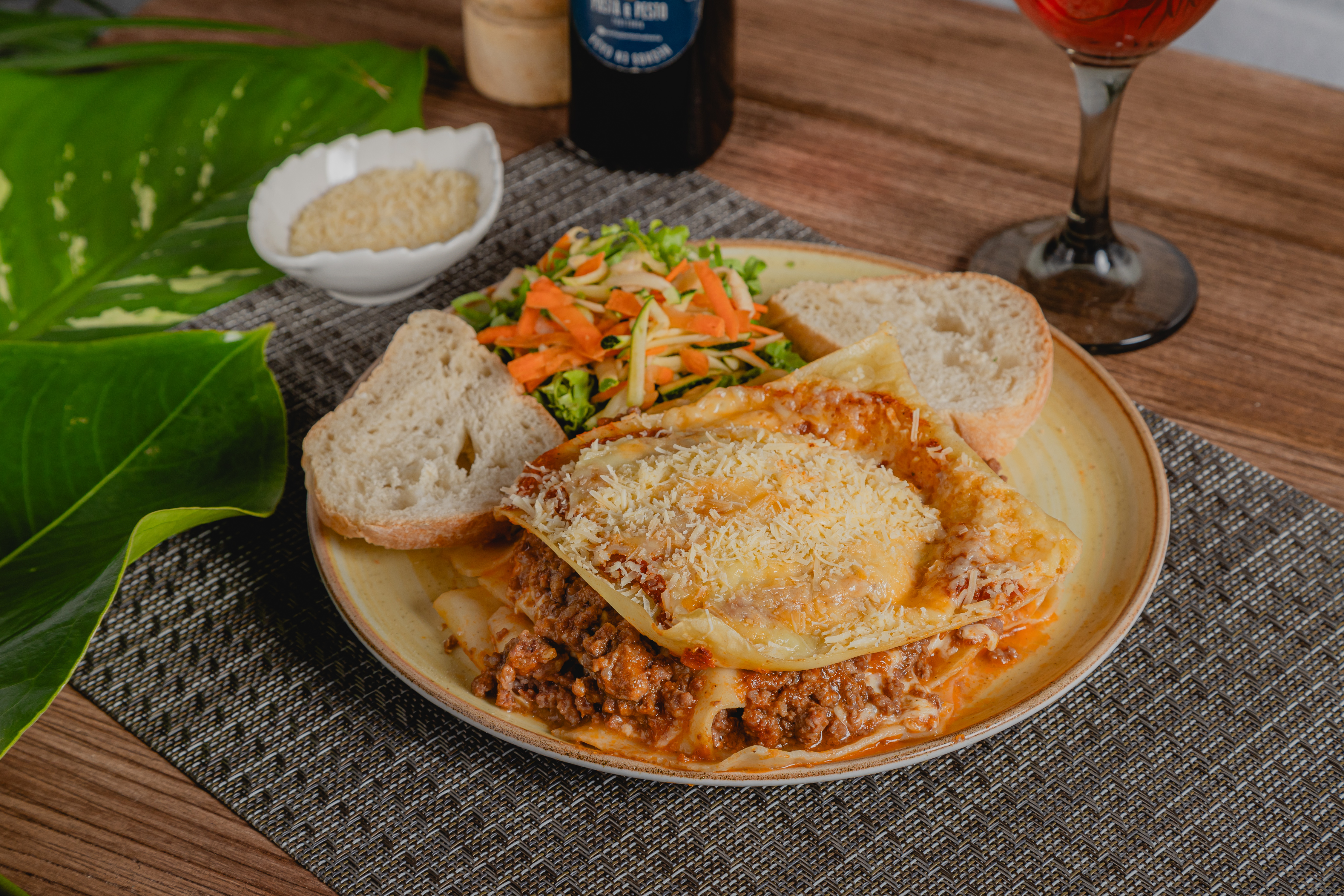Lasaña boloñesa mas bebidas