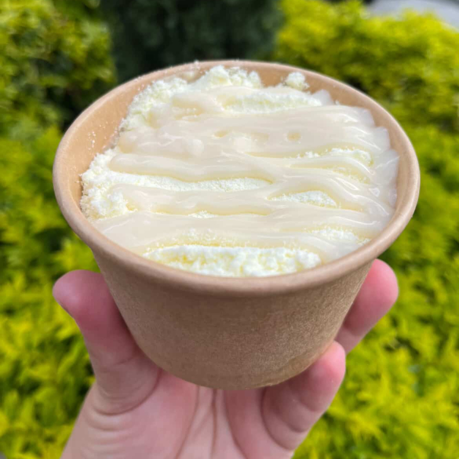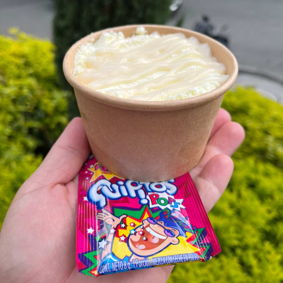 Postre de origen brasileño, frio y cremoso, elaborado con una crema con sabor a leche klim acompañado de galleta salada, lo que aporta un equlibrio en su sabor. topping: a tu eleccion.