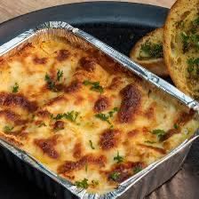 Lomito de Cerdo bañado en salsa blanca, Queso Cheddar, gratinado con queso Parmesano y mozzarella