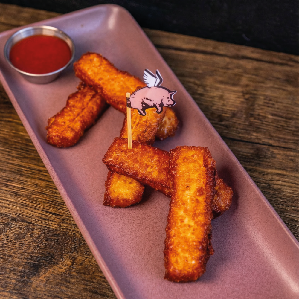 Dedos de queso papialpa fritos con nuestra salsa de chili dulce.
