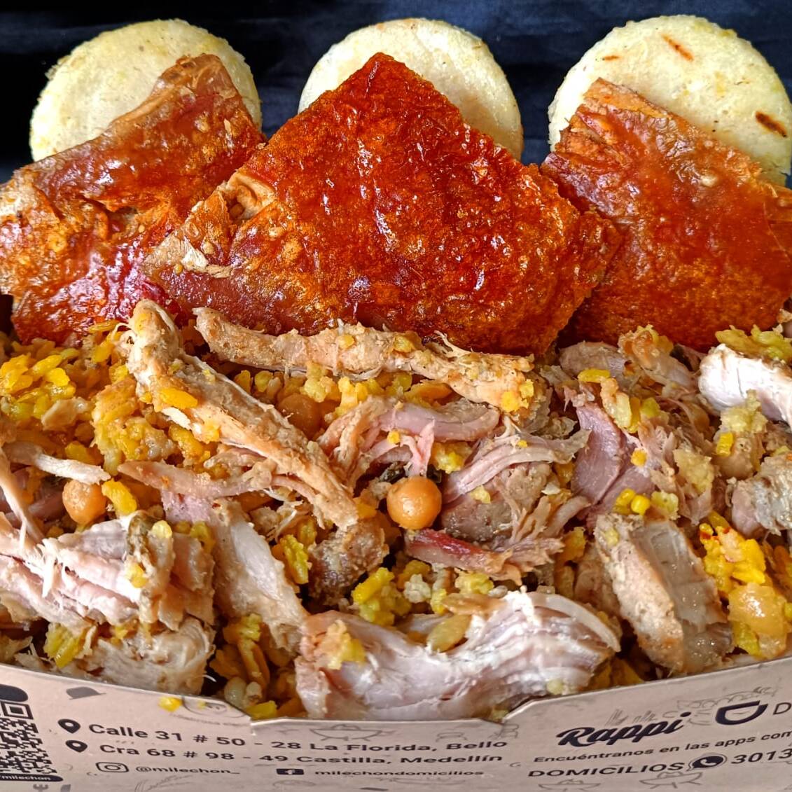 750 gr (2-3 personas) con cueritos crocantes y arepas