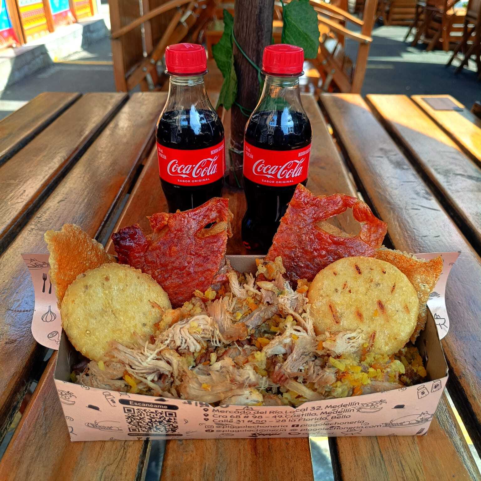 2 porciones personales de lechona y 2 gaseosas 250 ml