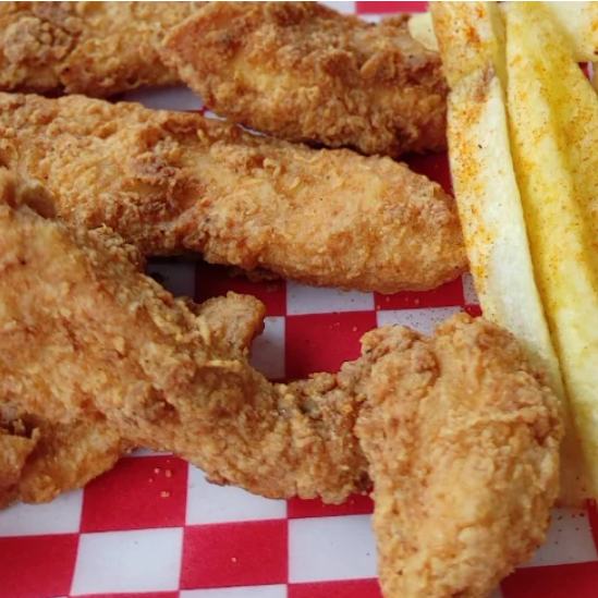 6 Pechuguines, papas a la francesa y 2 salsas a elección.