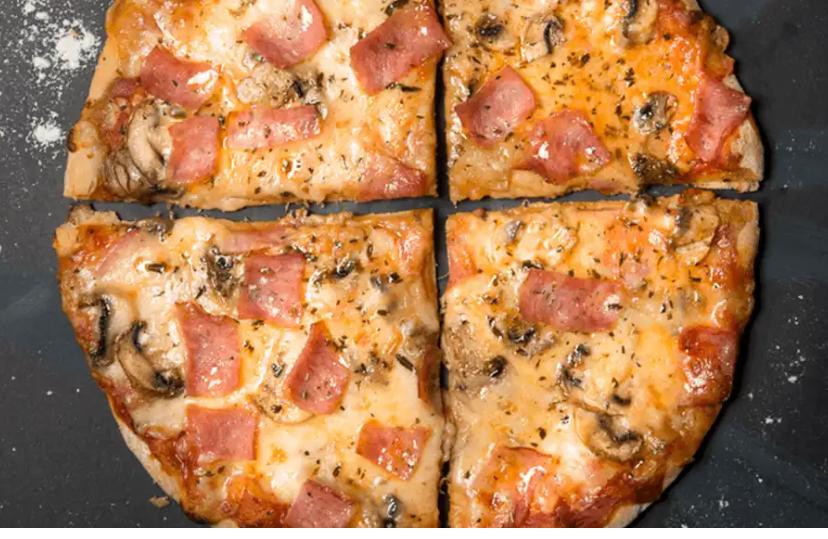 Pizza Jamón y champiñon.