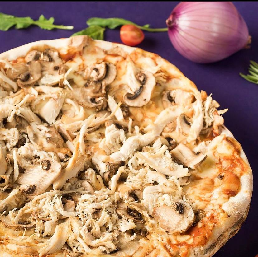 Pizza Pollo y champiñon.⭐