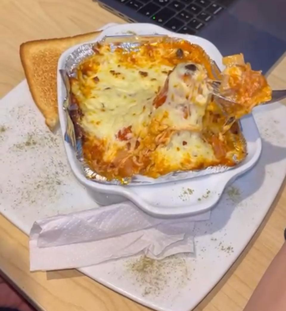 Deliciosa lasaña mixta, pollo, carne, tocineta, queso, salsa boloñesa y 2 pancitos de la casa.