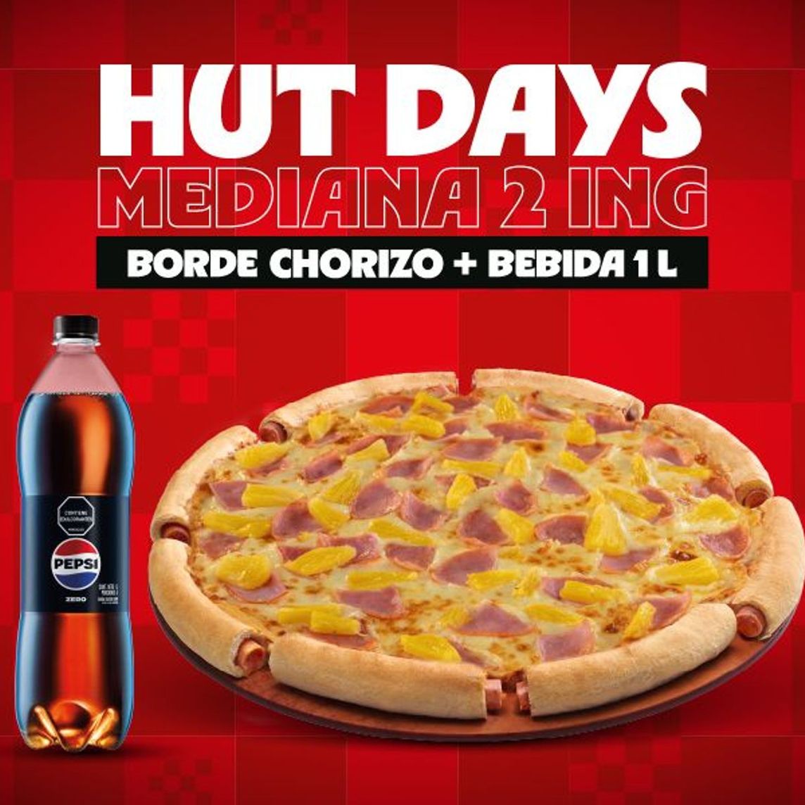 Pizza Pequeña en masa pan Jamón ó Pepperoni ó Napolitana + Bebida Pepsi 400 ml + Hut Poppers de Bocadillo (6 und) - Si quieres cambiar sabor de pizza o acompañamiento +$2000