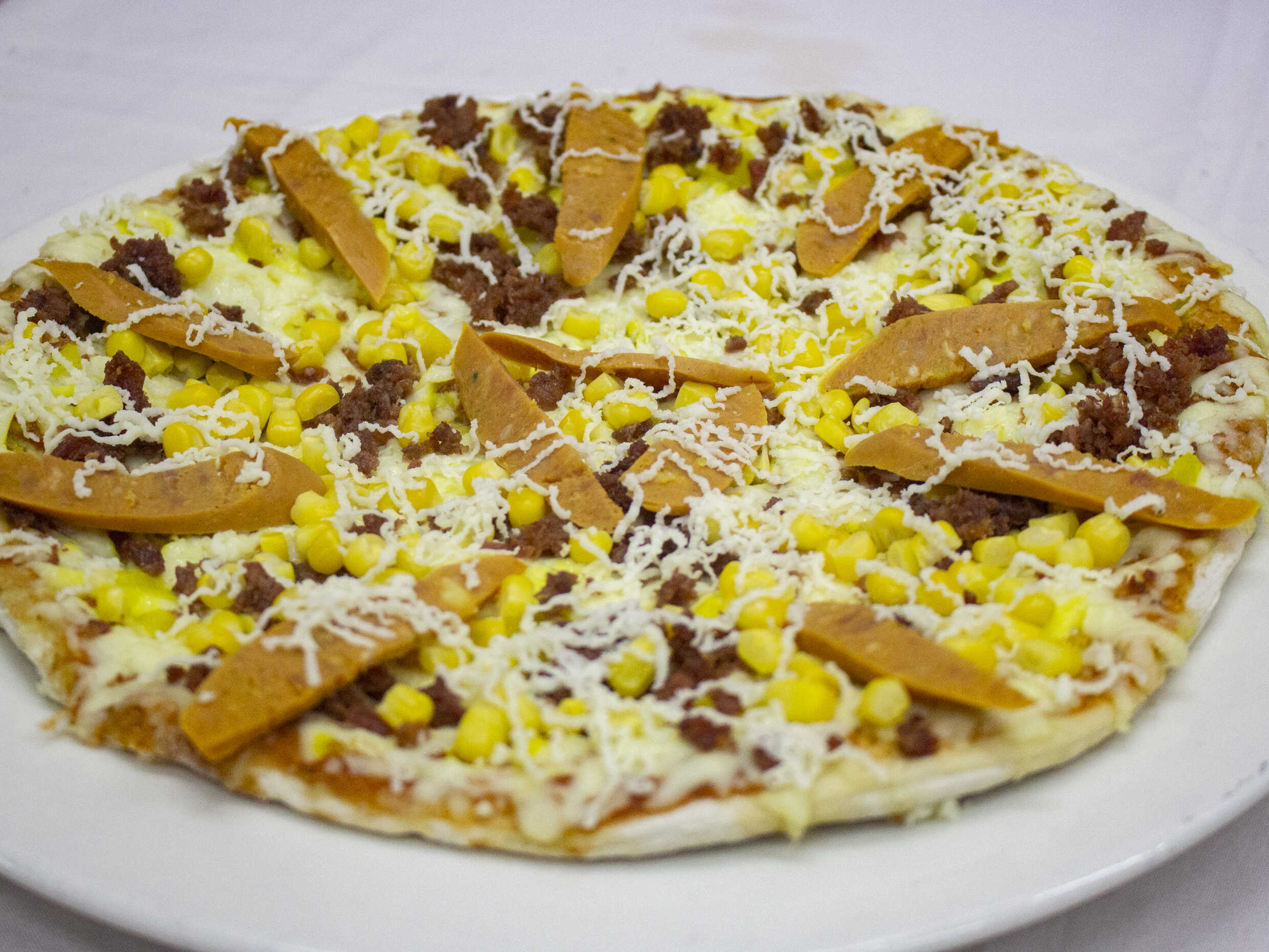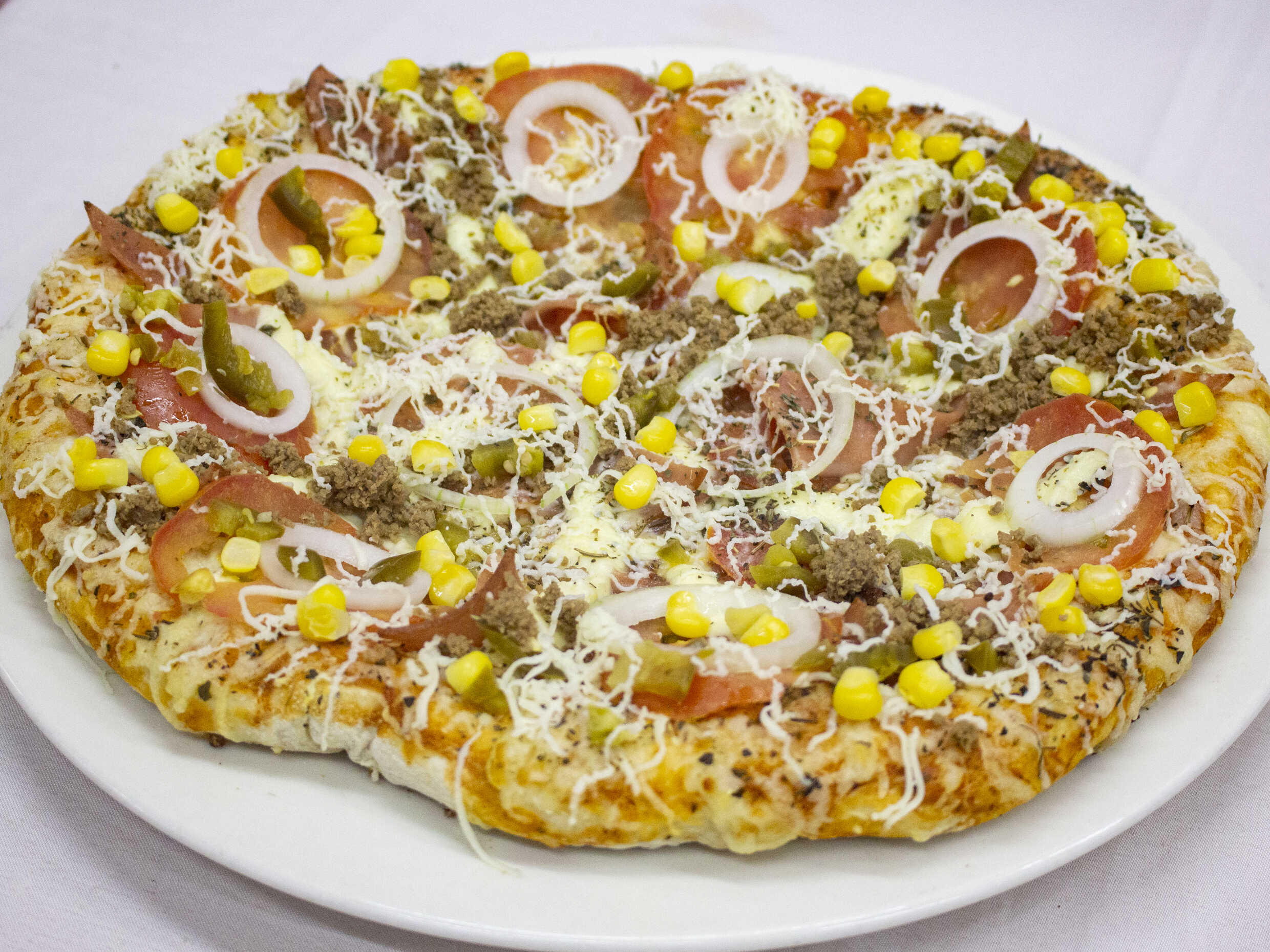 Sabores (jamón, paisa, mexicana, hawaiana, pepperoni, pollo, salami, pollo ranchera, campesina, napolitana, salami vegetales, champiñón, hawaiana especial, ranchera, pollo jamón, pollo tocineta, pollo maíz, vegetales tocineta y lasaña mixta (borde de jamón y queso o de bocadillo y queso).