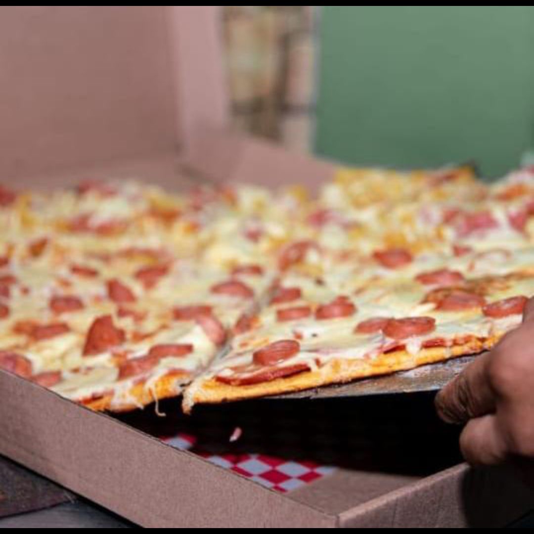 Pizza extra 10 porciones, más gaseosa 1.5 L.