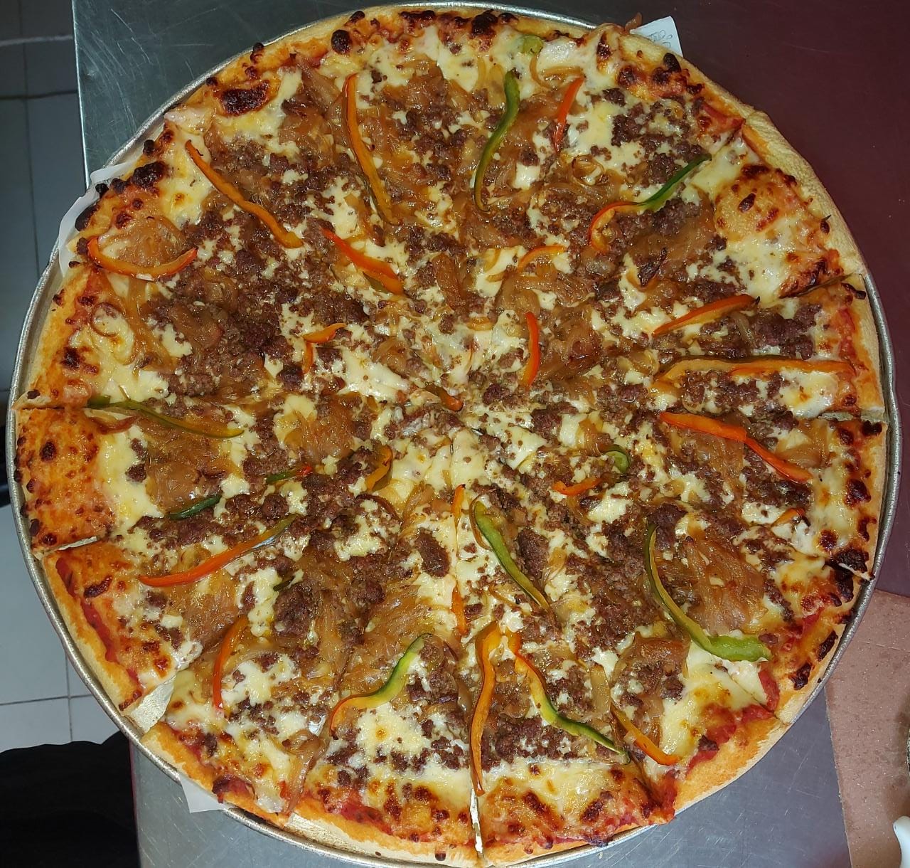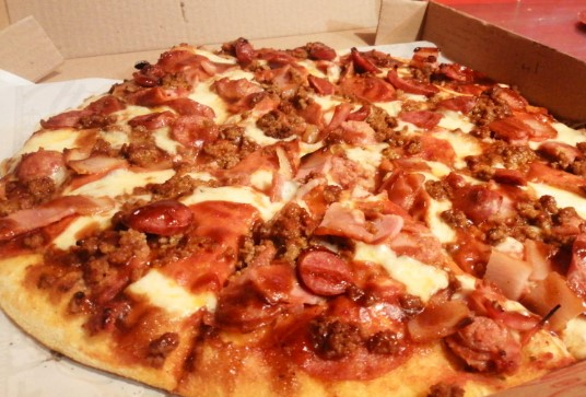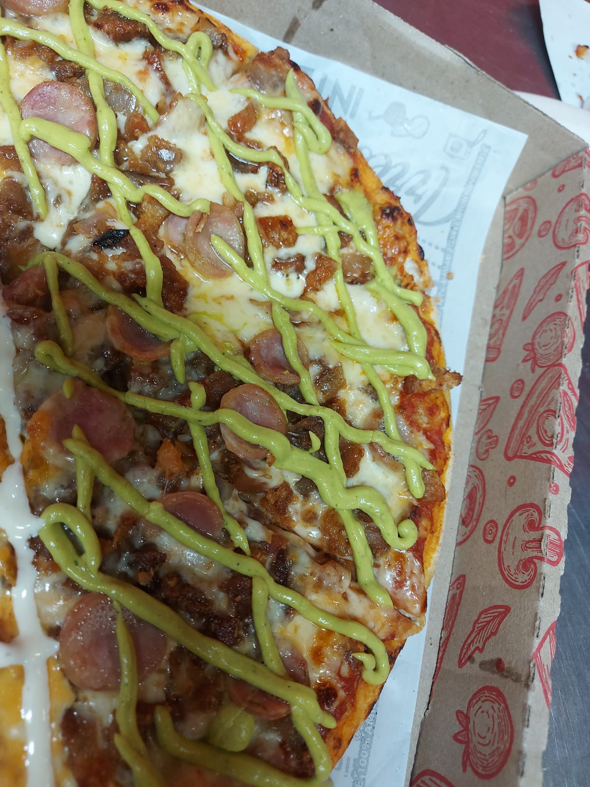 Ingredientes: chorizo, pepperoni, carne, tocineta, cábano y BBQ.