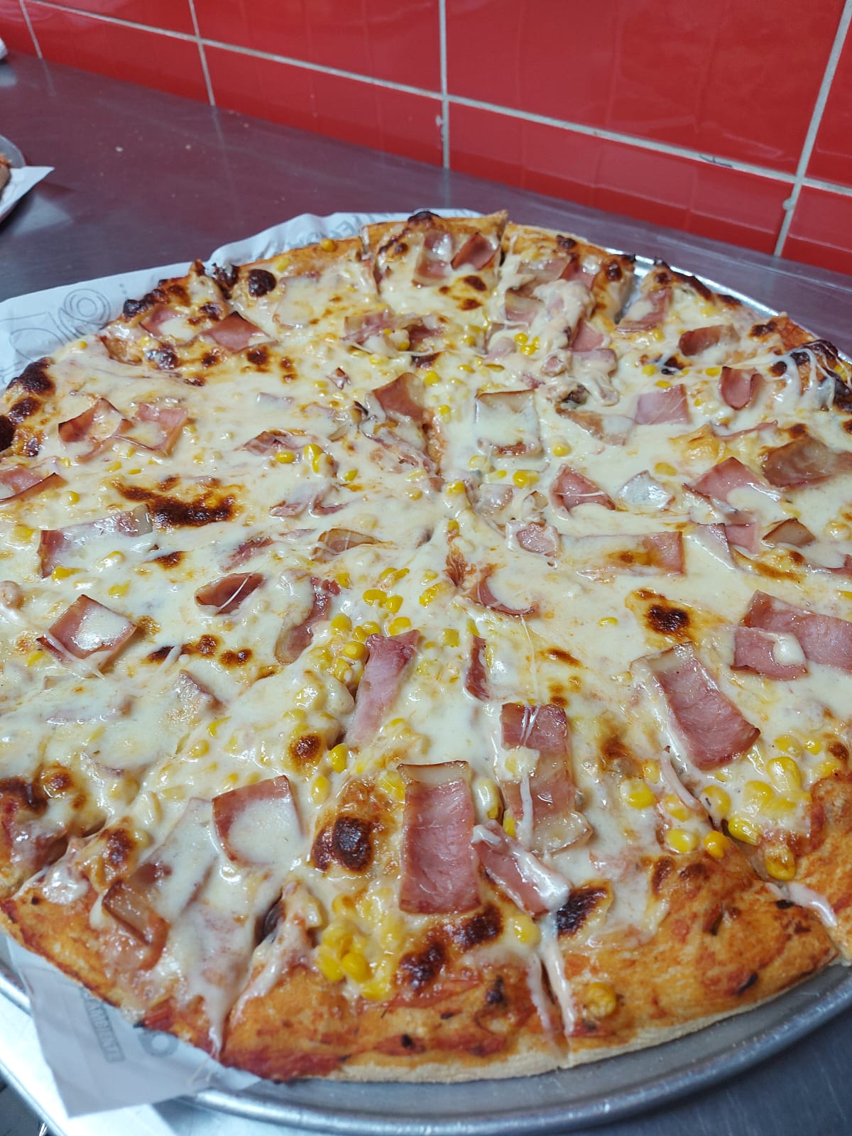Ingredientes: jamón, tocineta, champiñón, salami, pimentón y maíz.