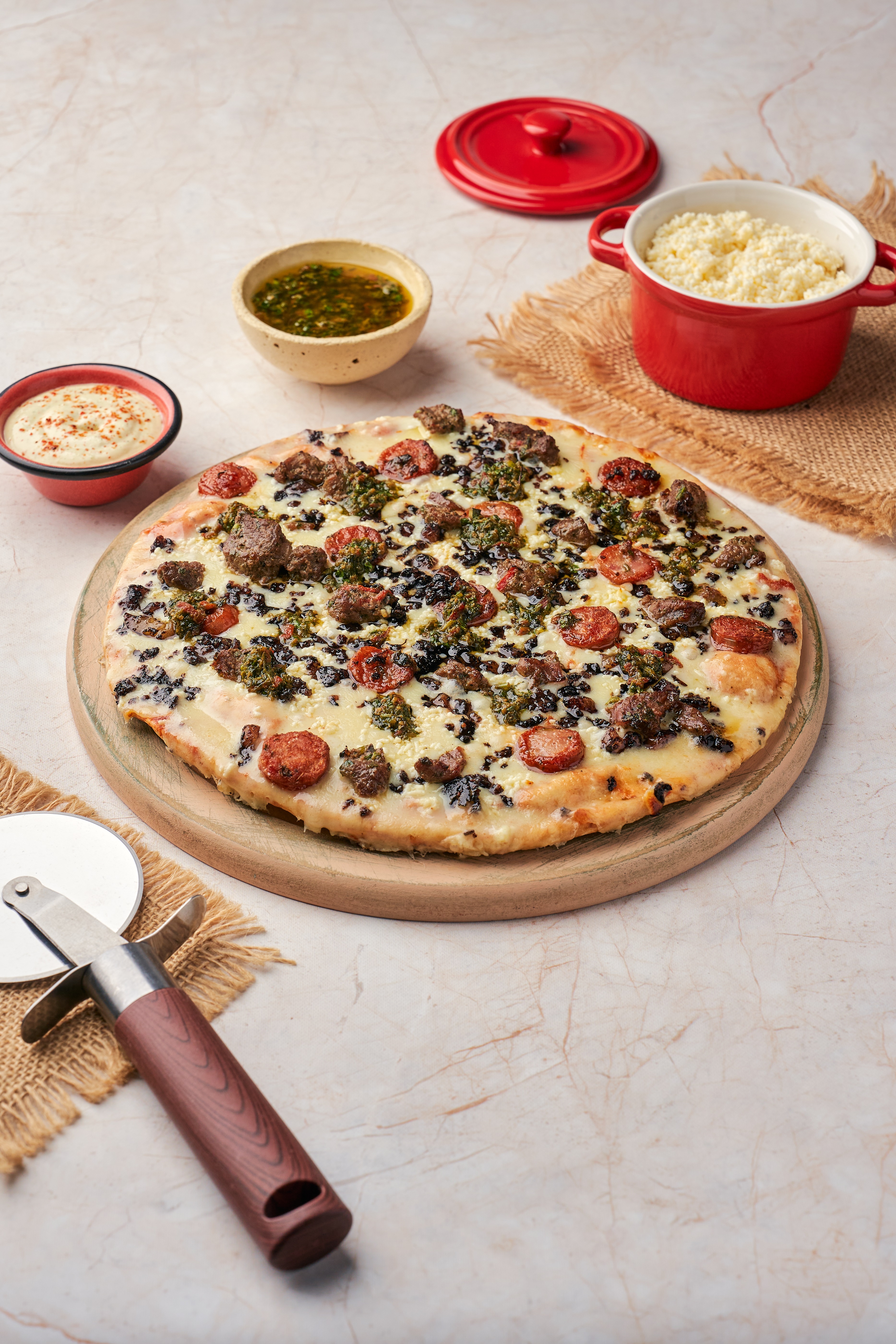 Queso, solomito, chimichurri, chorizo, morcilla y queso costeño cremoso