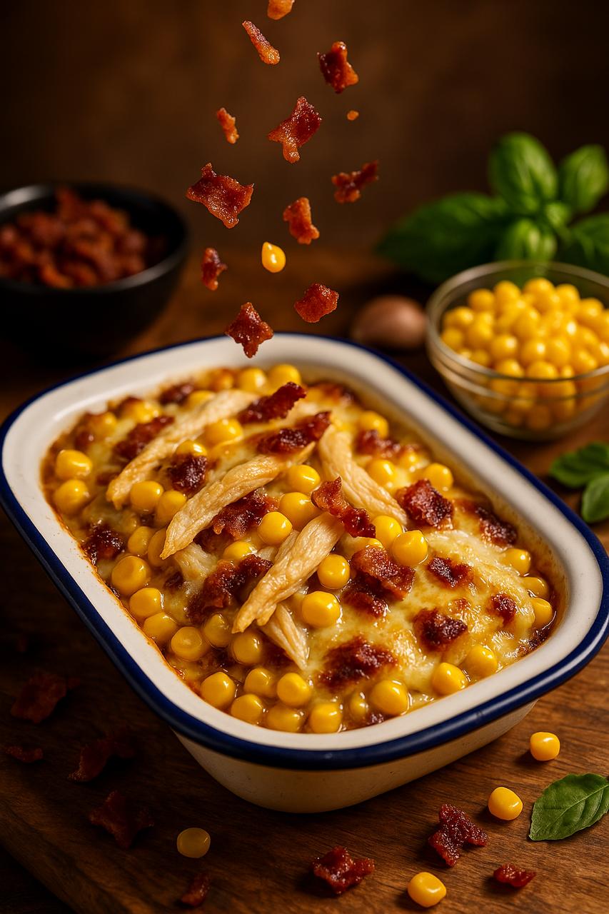 Lasagna Pollo, Maicitos, Tocineta y Queso