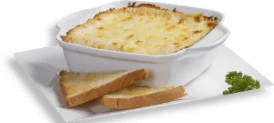Gratinado con carne desmechada, pollo y tocineta.