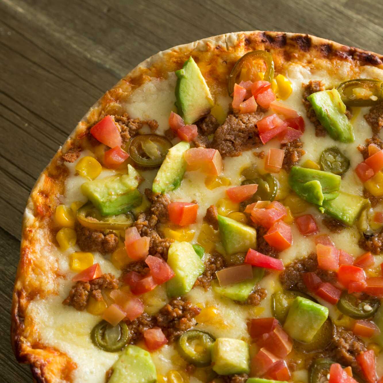Carne de res a la parrilla queso mozarella, peperoni y albahaca, vegetales frescos y salsa pomodoro