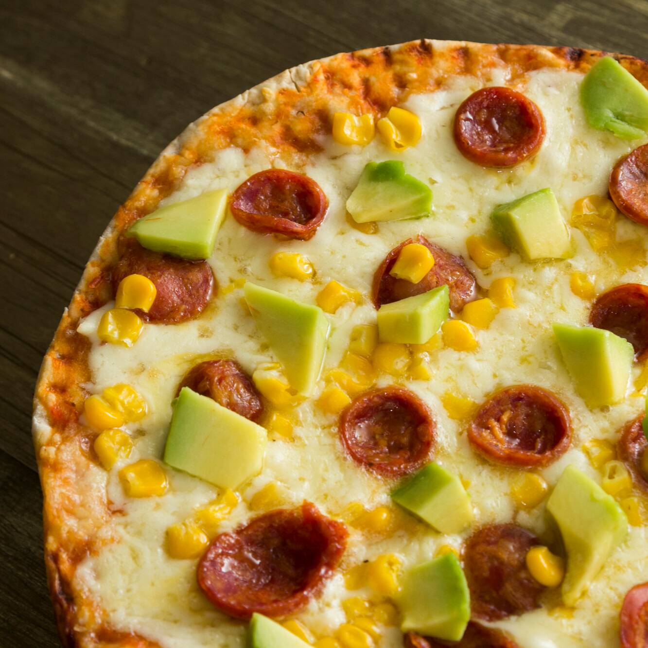 Chorizo, maíz y aguacate.