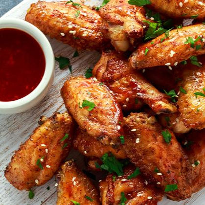 18 piezas de alitas horneadas y bañadas en salsa bbq acompañadas de papitas a la francesa y Gaseosa 1.5 lts