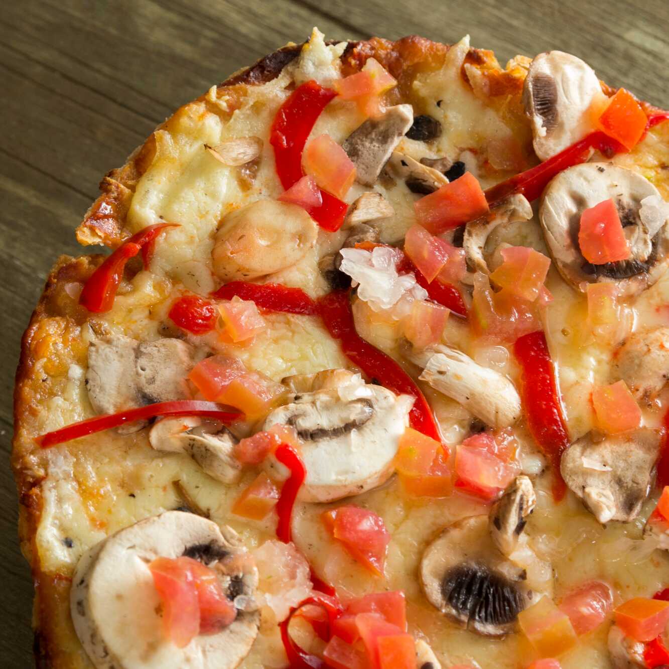 Champiñon, cebolla, pimentón y tomate.