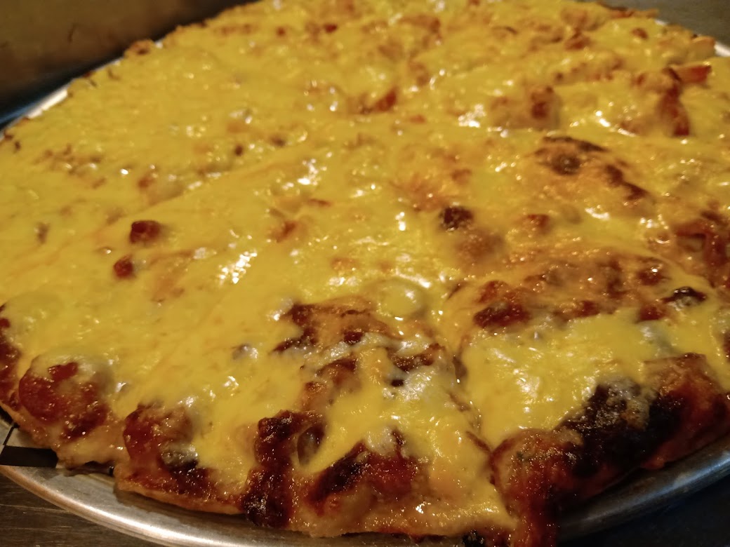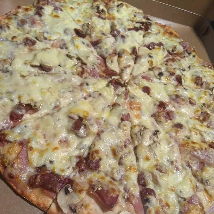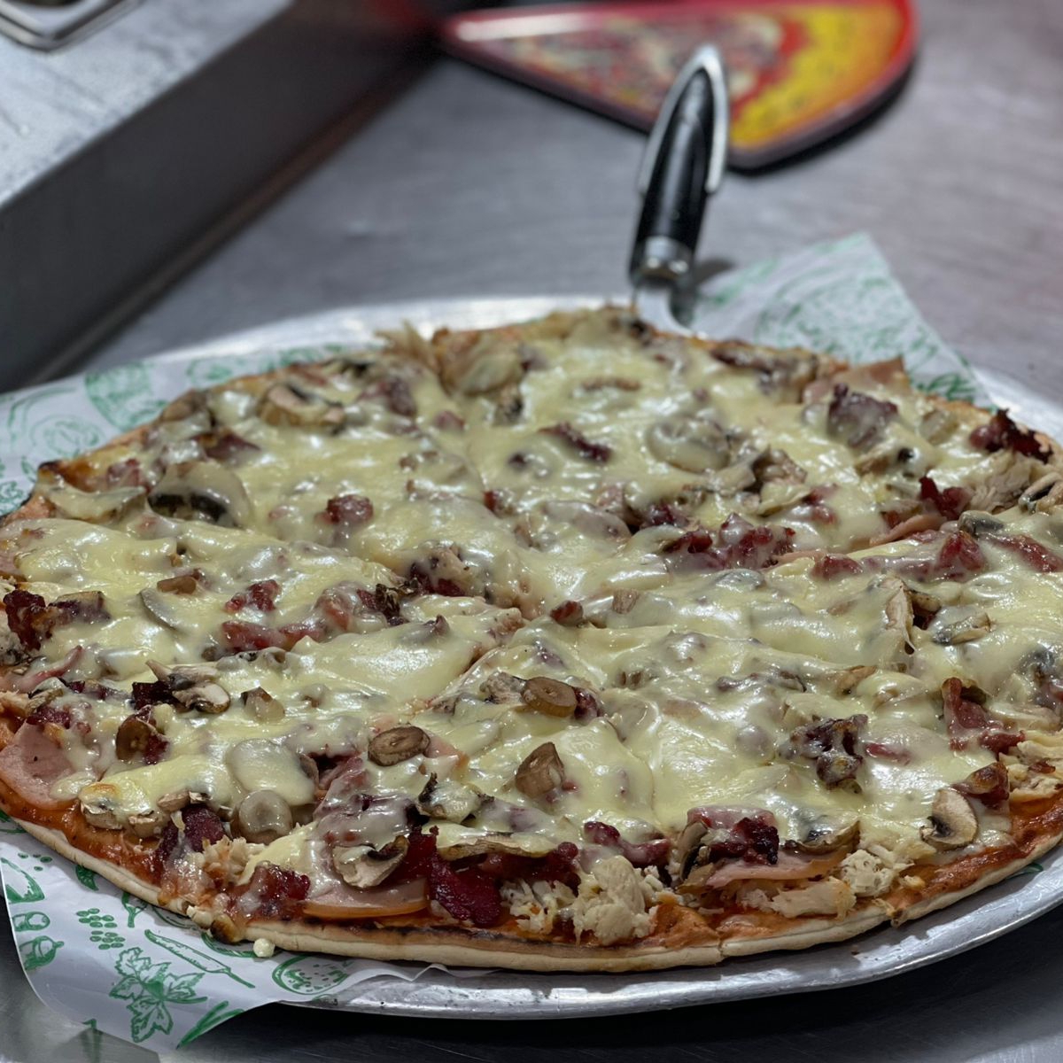 Pasta Napolitana, Jamón, salami, tocineta, pollo, champiñones y pimentón.