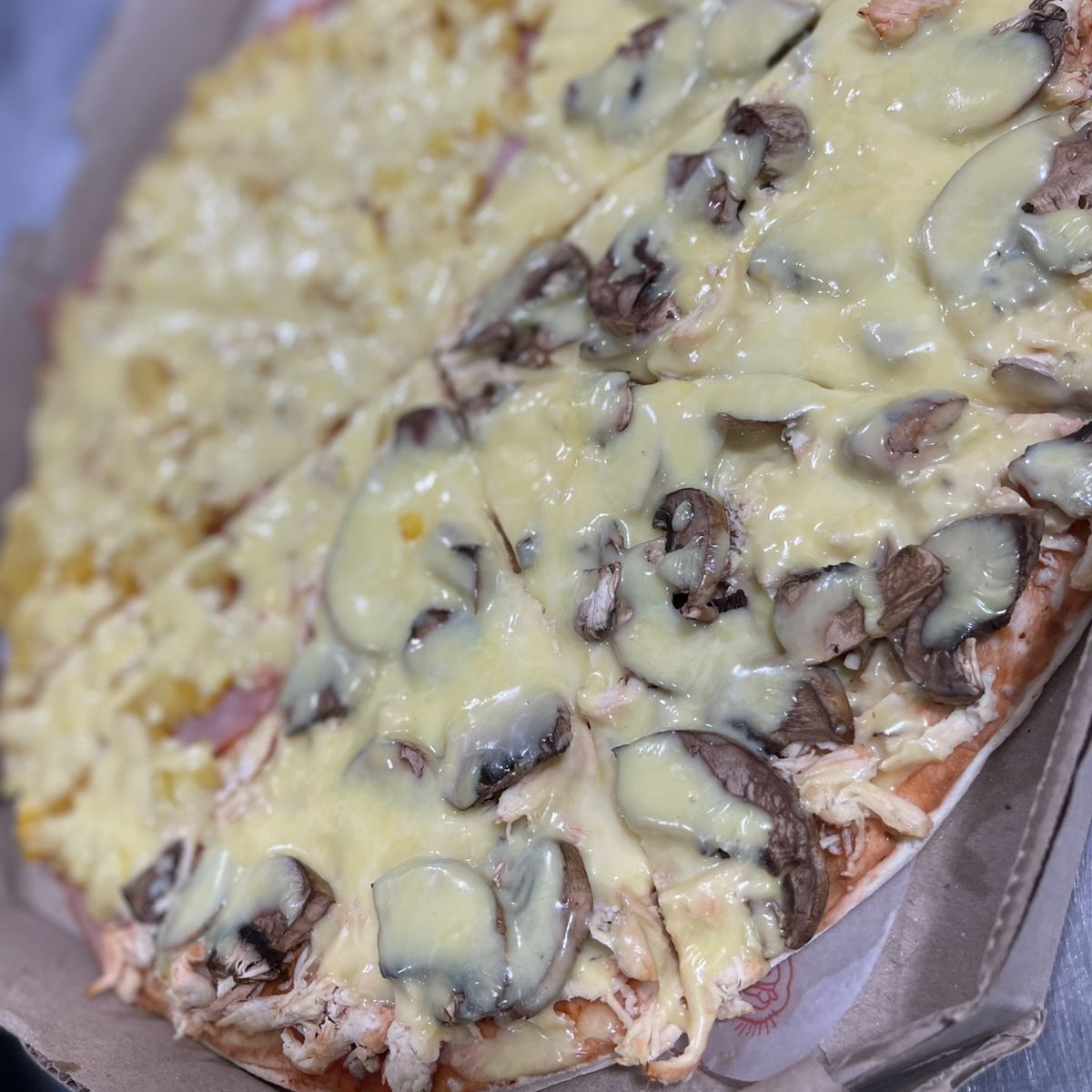 Queso, Pollo, championes, salsa napolitana