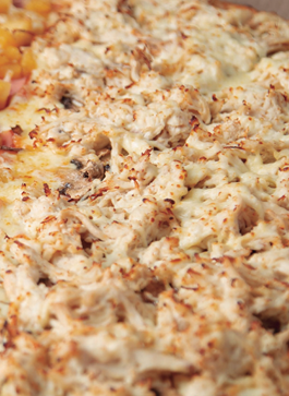 Queso mozzarella, pepperoni, maíz tierno, pimentón, cebolla, champiñones, pollo y salsa de la casa, pizza mediana 8 porciones, pizza grande 10 porciones.(si quieres quitar un complemento tienes la opcion)