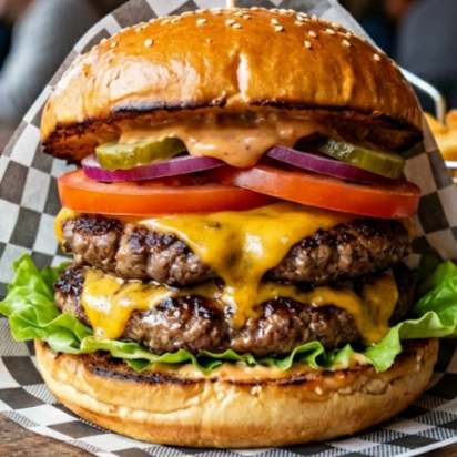 Carne de res, jamón, queso, tocineta, tomate, lechuga, ripio.
