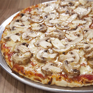 Pizza de 8 porciones con salsa napolitana, queso mozzarella, pollo y champiñones.