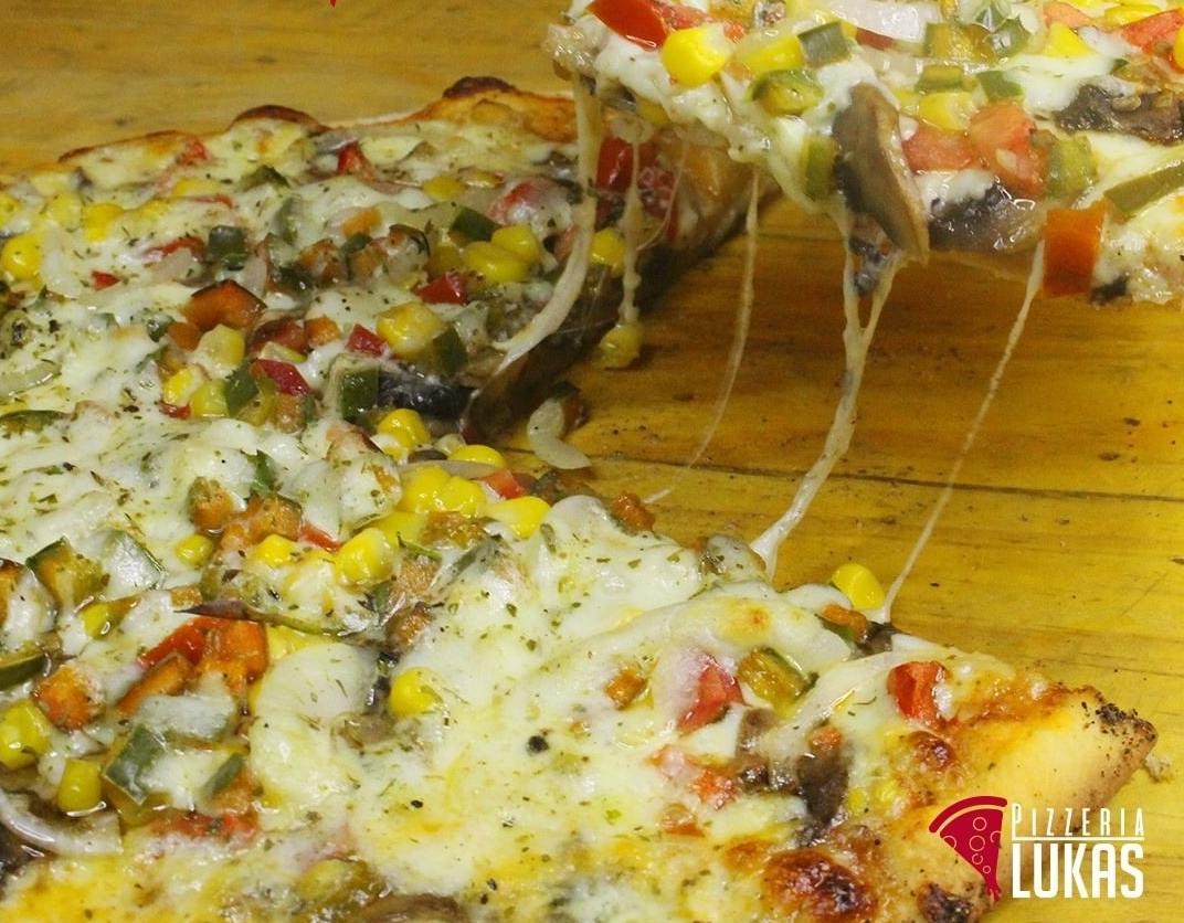 Champiñones, tomate, cebolla, maíz y pimentón.