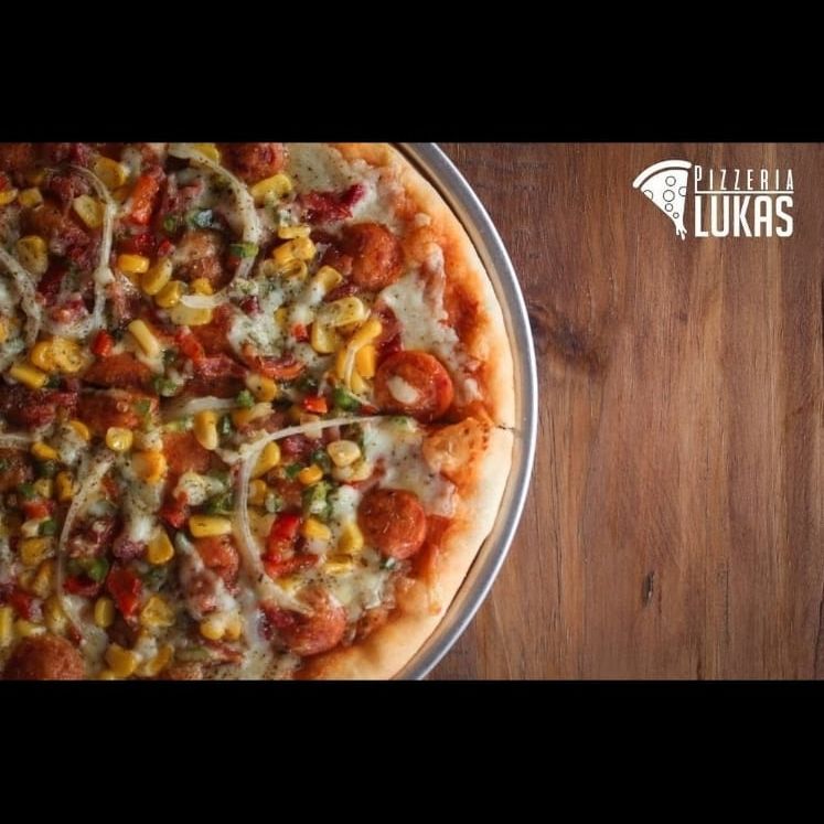 Chorizo, tocineta, maíz, cebolla y pimentón.