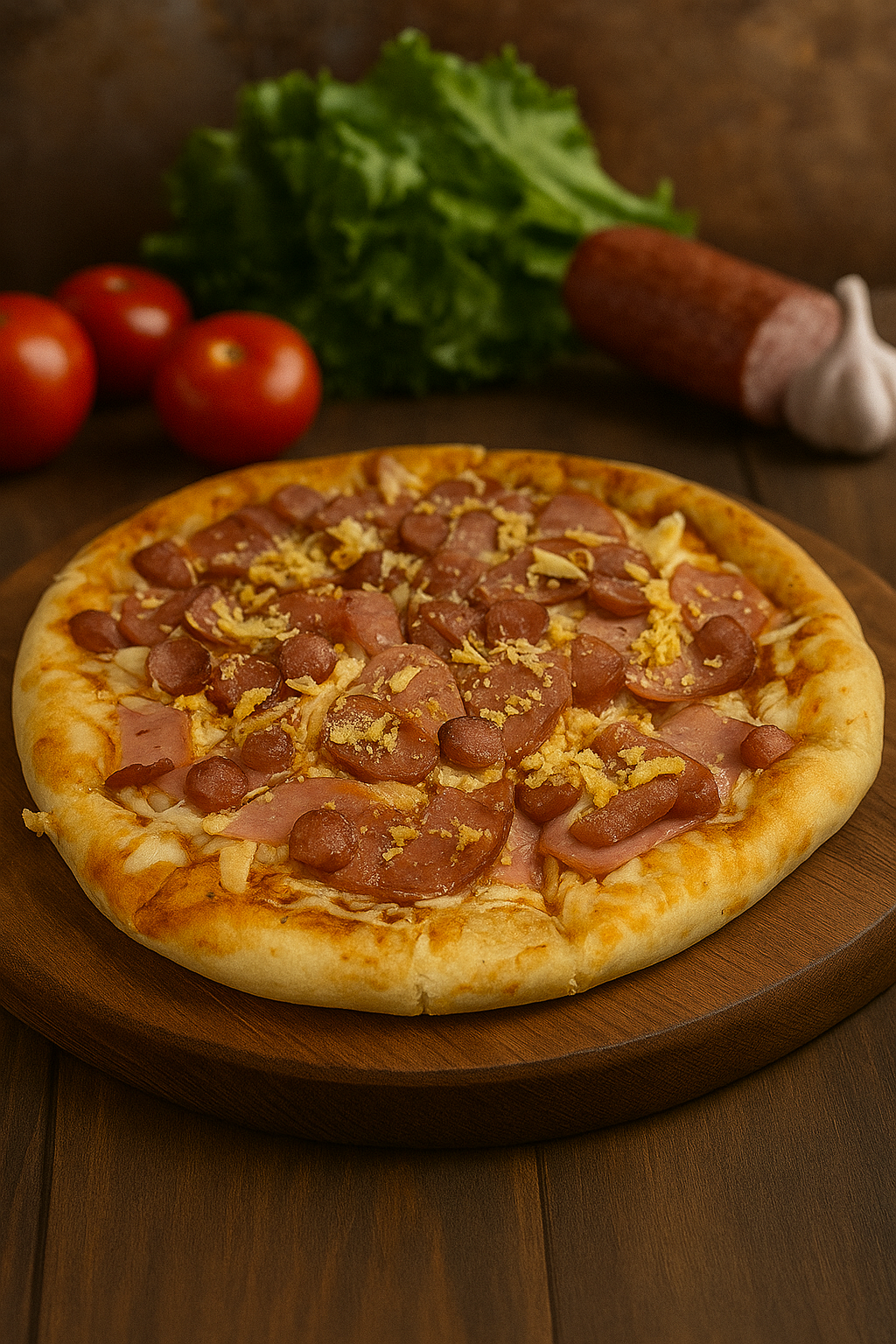 Platillo para aproximadamente de 4 a 5 personas, Pizza de 10 porciones (40cm) deliciosa masa elaborado con harina de trigo, sal, y agua horneada, cubierto con salsa acompañada de tus ingredientes favoritos.