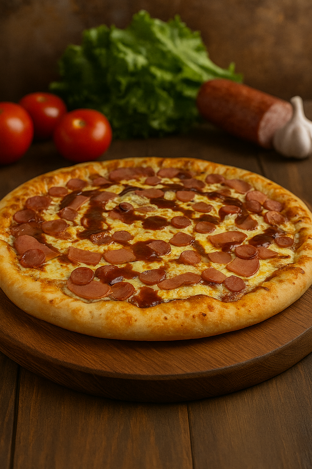 Deliciosa pizza de 12 porciones de 45 cm, masa elaborado con harina de trigo, sal, y agua horneada, cubierto con salsa acompañada de tus ingredientes favoritos.