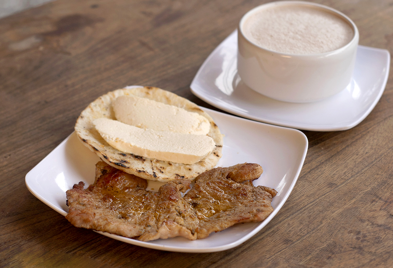 Carne a eleccion a la parrilla, acompañado de arepa, mantequilla y queso mozarella