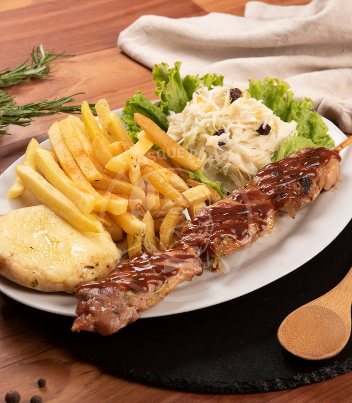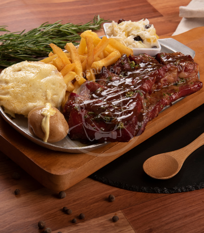 300 g de Costillas BBQ, acompañado de papa al vapor o papa francesa, arepa, queso mozzarella y ensalada dulce.