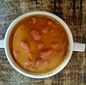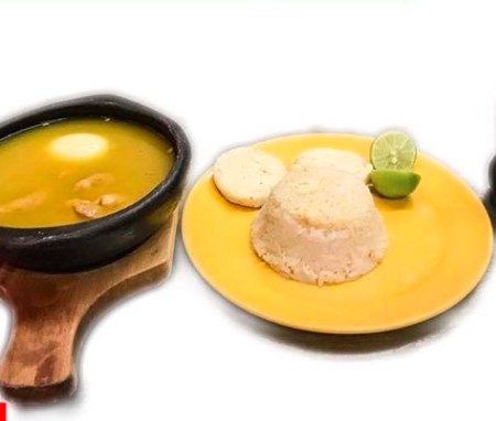 Caldo y huevo.