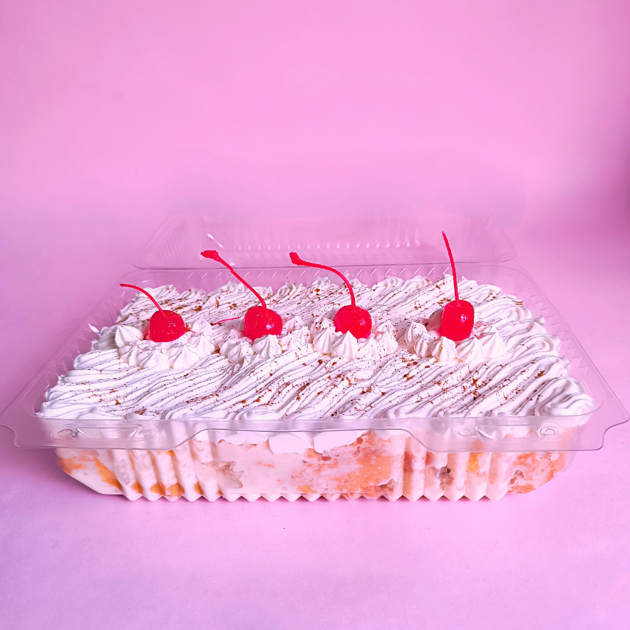 Bizcocho de vainilla, bañado en tres leches (crema de leche, leche condensada y leche entera), decorado con chantilly. 270g.