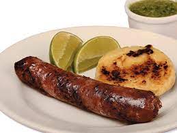 Delicioso chorizo del campo 100% artesanal hecho con cañón de cerdo, acompañado de una arepa más queso mozzarella derretido.