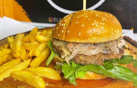 Hamburguesa con pan chicharron sin papas.