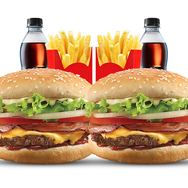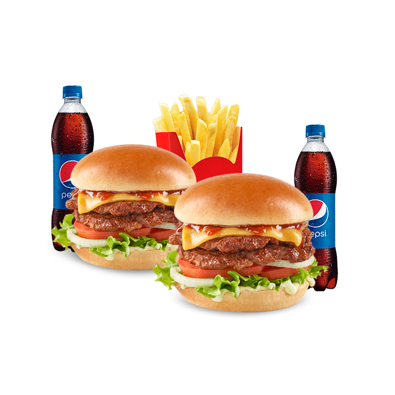 2 Hamburguesas BBQ + 1 Papas grandes + 2 Bebidas.