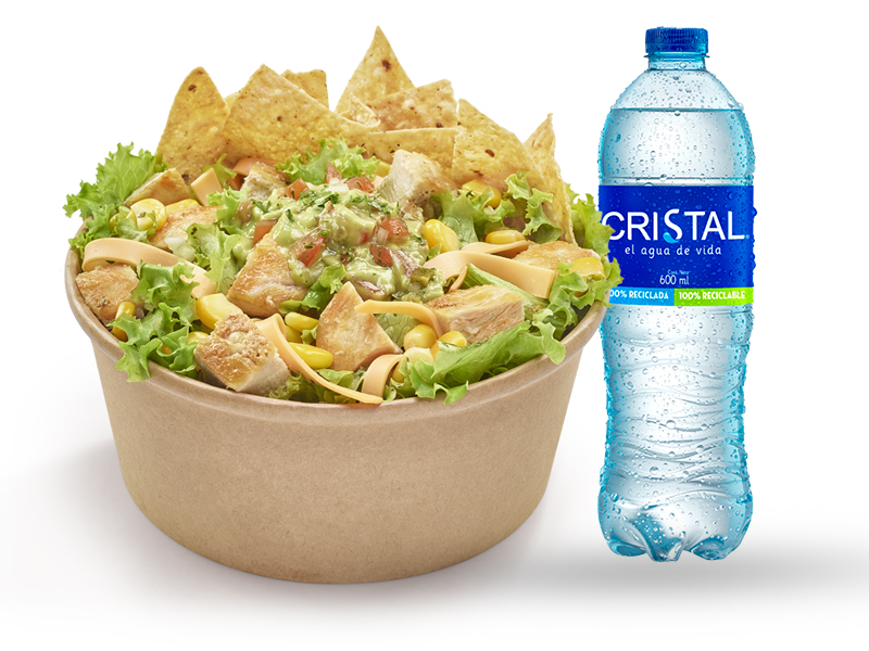 Ensalada catrina acompañada con salsa Chipotle y bebida de 400 ml.