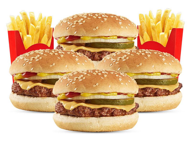 4 Hamburguesas cheese burger con 2 papas de 173 gr