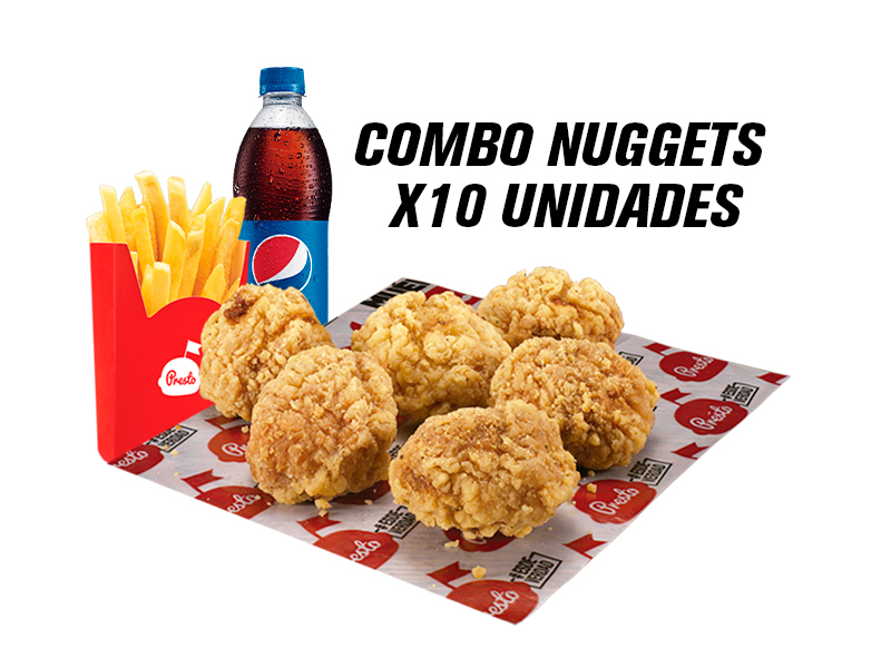 Nuggets X 10 und + papa francesa mediana y bebida 400 Ml