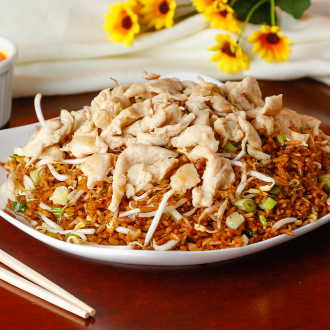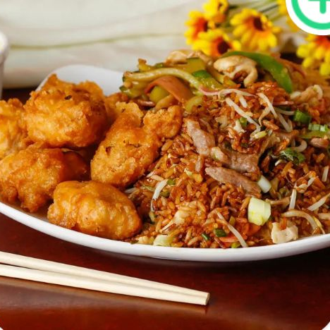 1/2 Caja de arroz chino y 1/2 de pollo (4 presas), para 3 personas.