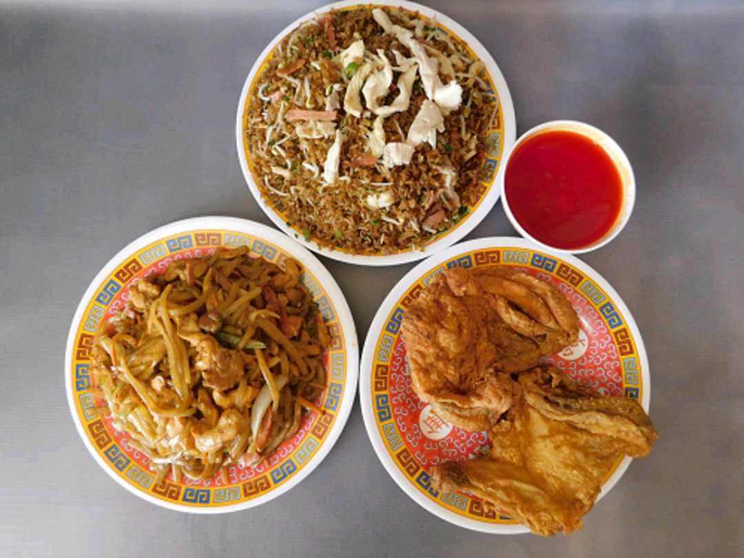 Arroz Chino (150 gramos aprox) + Chop suey, Espaguetis o Agridulce( presentacion mediana)+ salsa de la casa