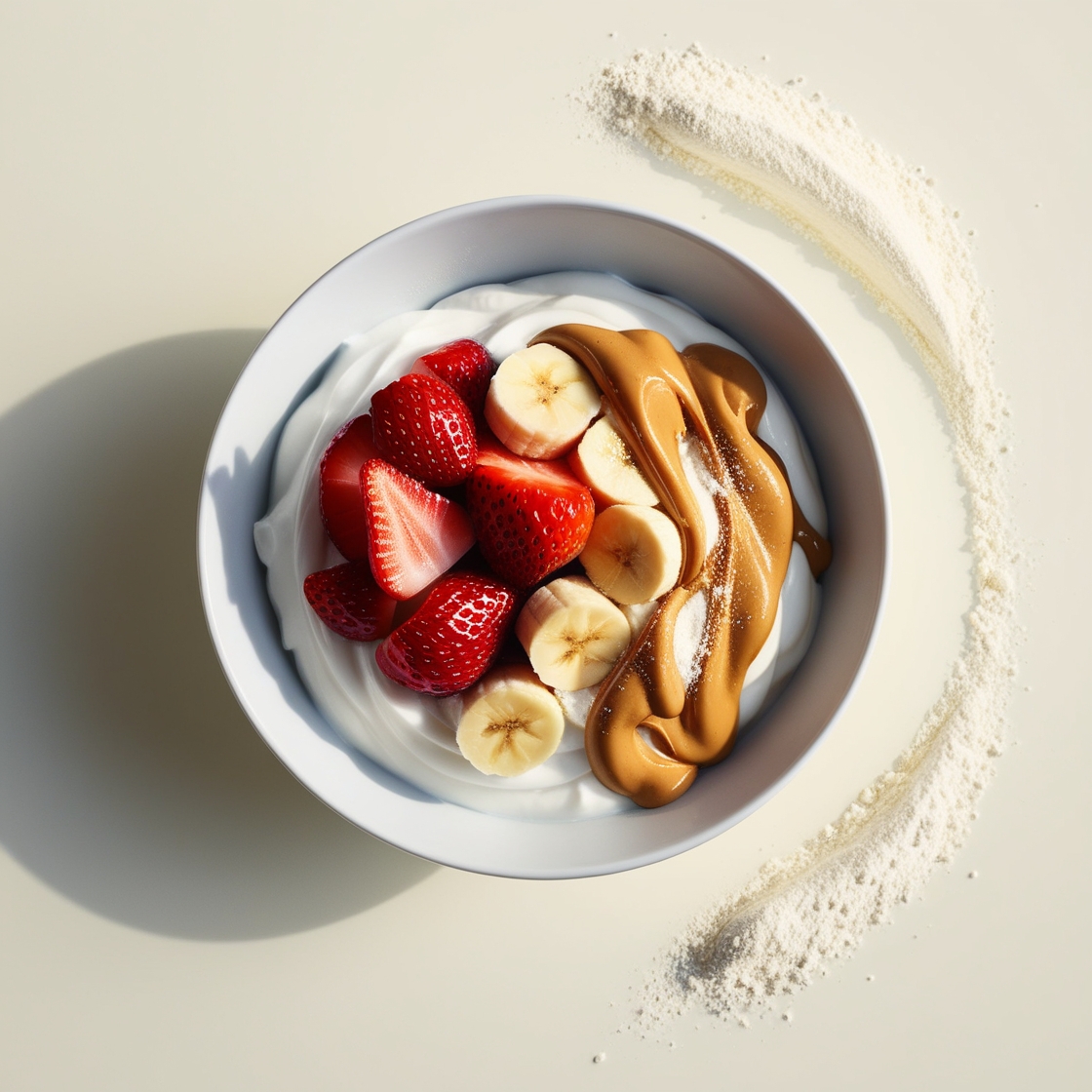 Acaí, banano, fresa, mantequilla de maní y leche en polvo,