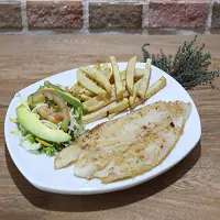 Delicioso pescado al ajillo o natural, acompañado de ensalada y papa al vapor o francesa.