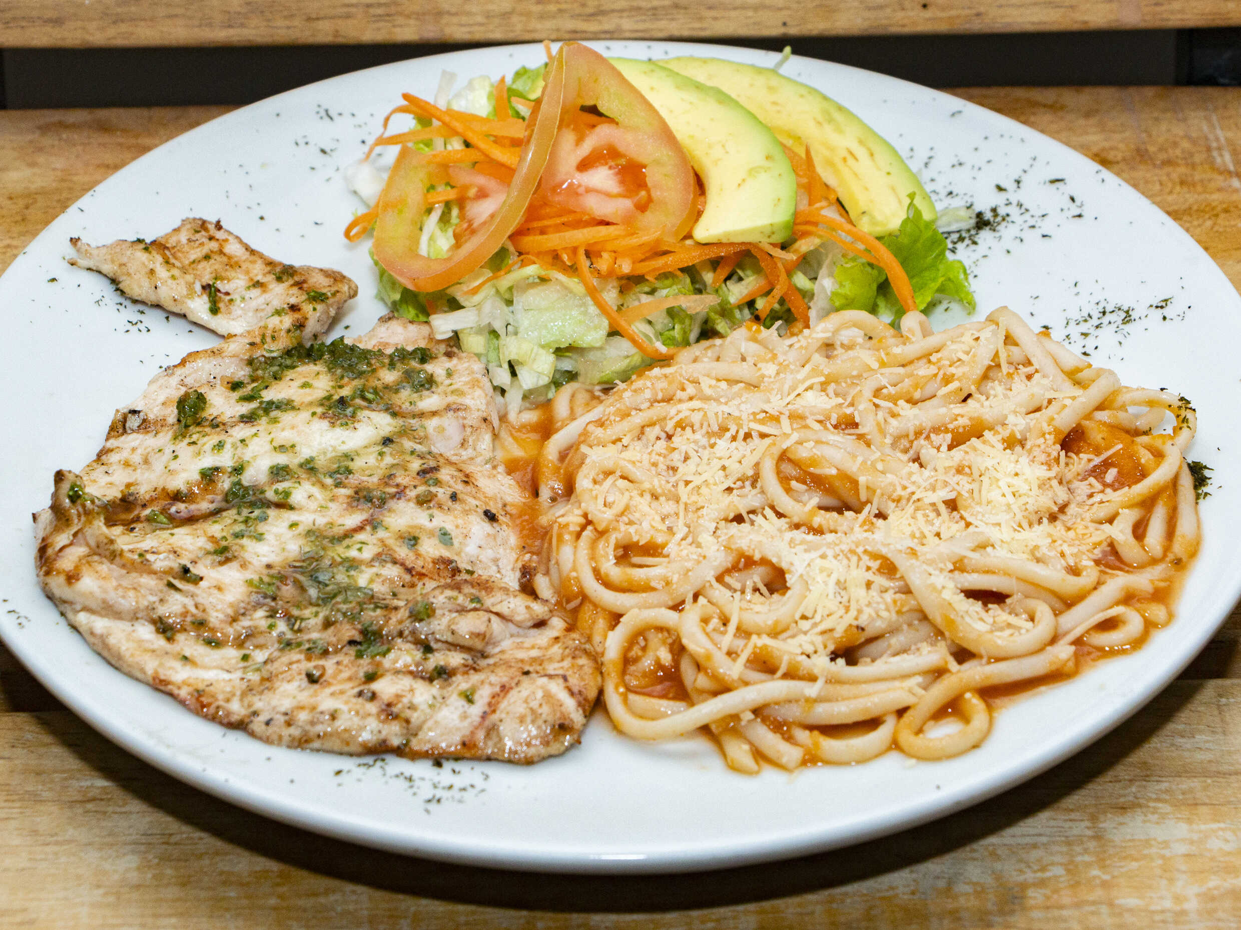 Escoge tu pasta y salsa al gusto combinado con 1/2 pechuga.