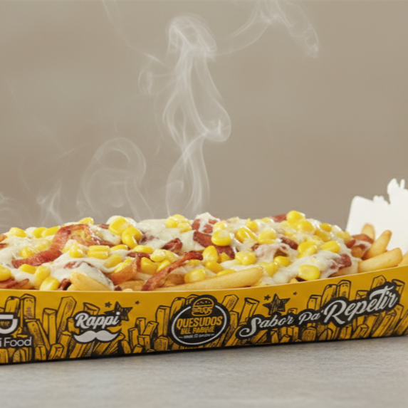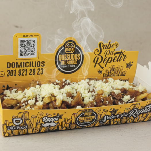 900g de papas, tocineta crocante, queso cheddar rayado y salsas especial de la casa ahumada para 1 a 2 persona